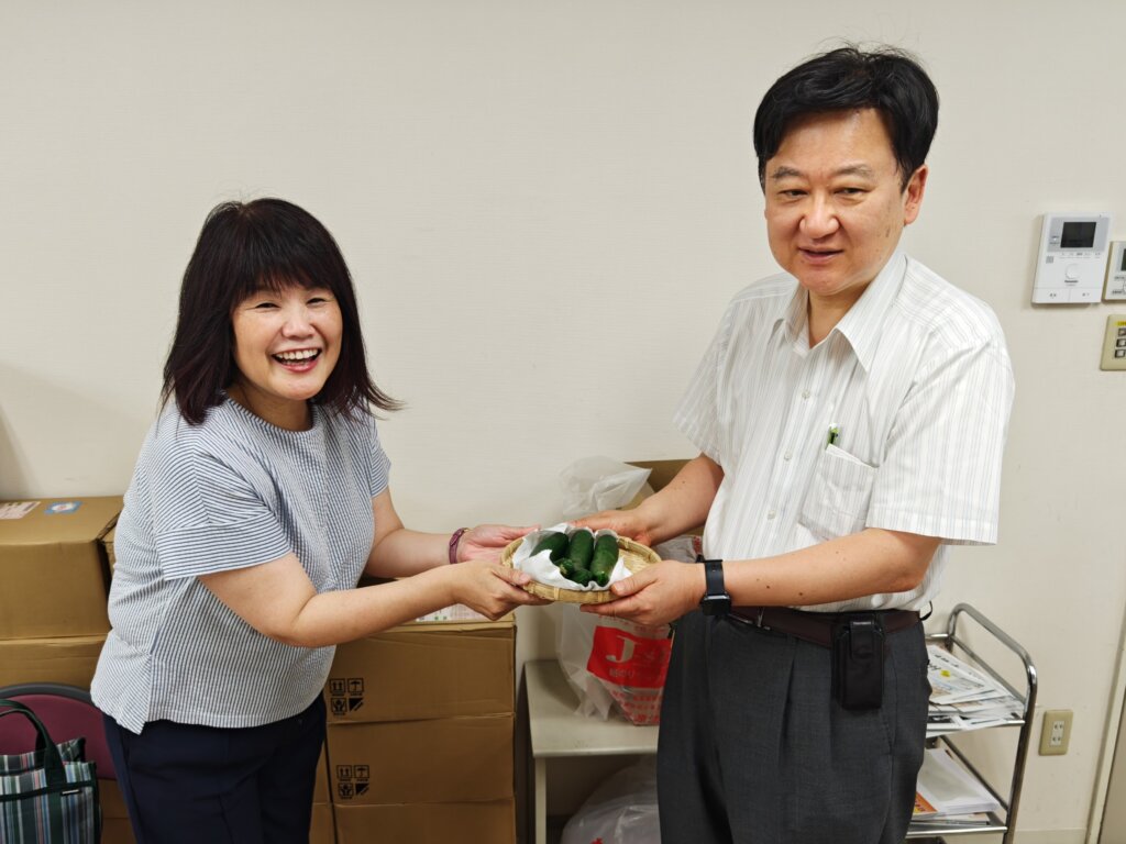 昨年7月には、園長先生が昨年お渡しした種から育てたきゅうりを持ってきてくださいました。